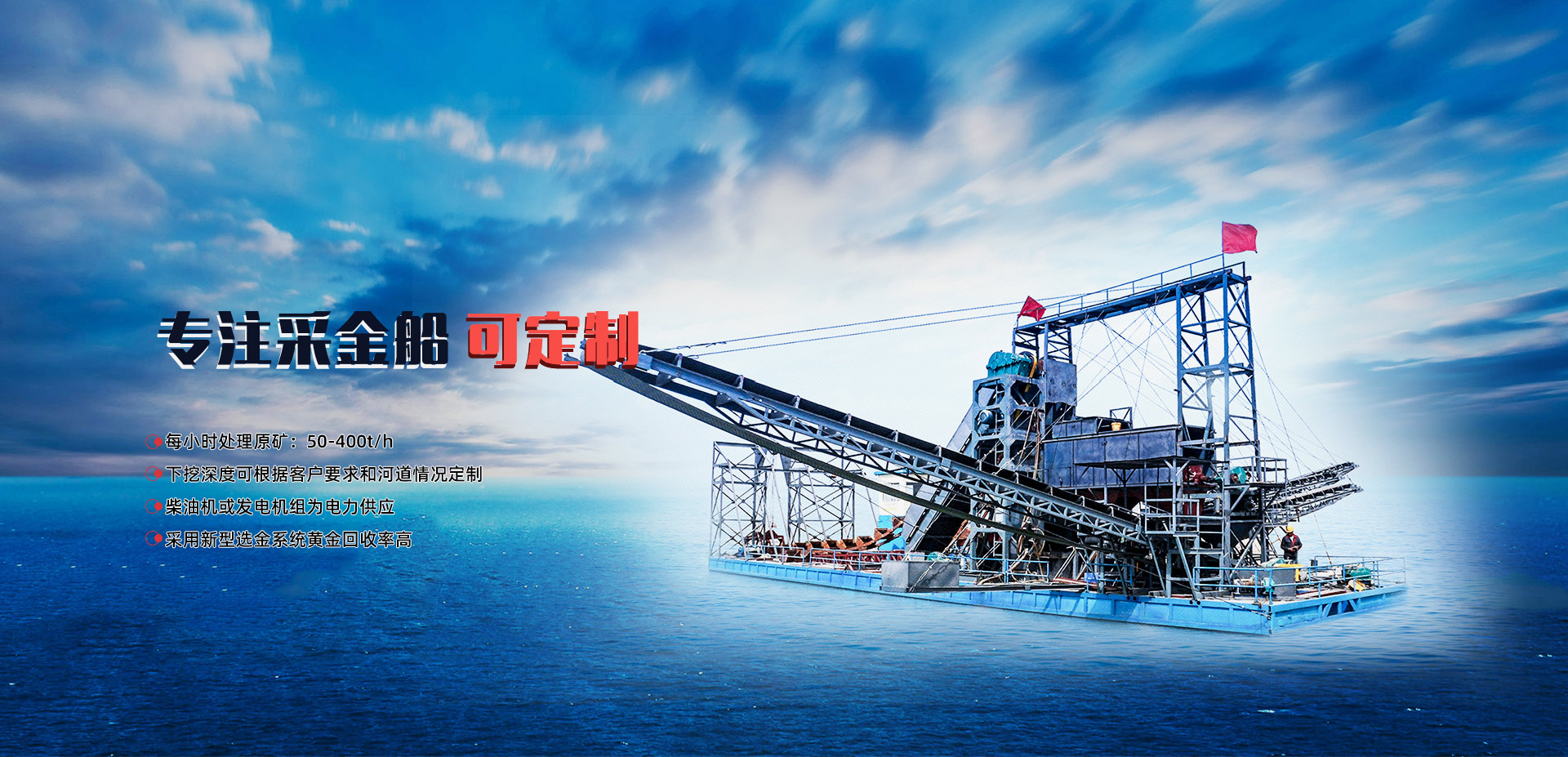 主打產(chǎn)品 根據(jù)礦料定制:選礦設(shè)備 沙金礦開采設(shè)備 尾礦回收設(shè)備 采金船 離心機(jī)等產(chǎn)品